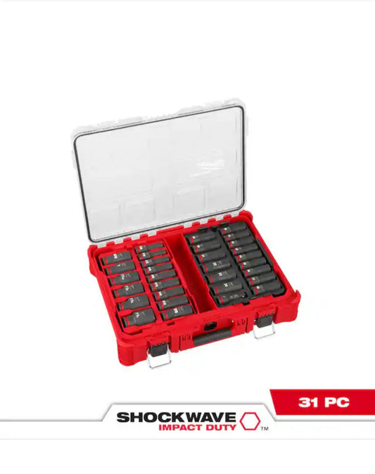 Milwaukee SHOCKWAVE 1/2” Drive SAE 6 Point Impact Socket Set (19-Piece)