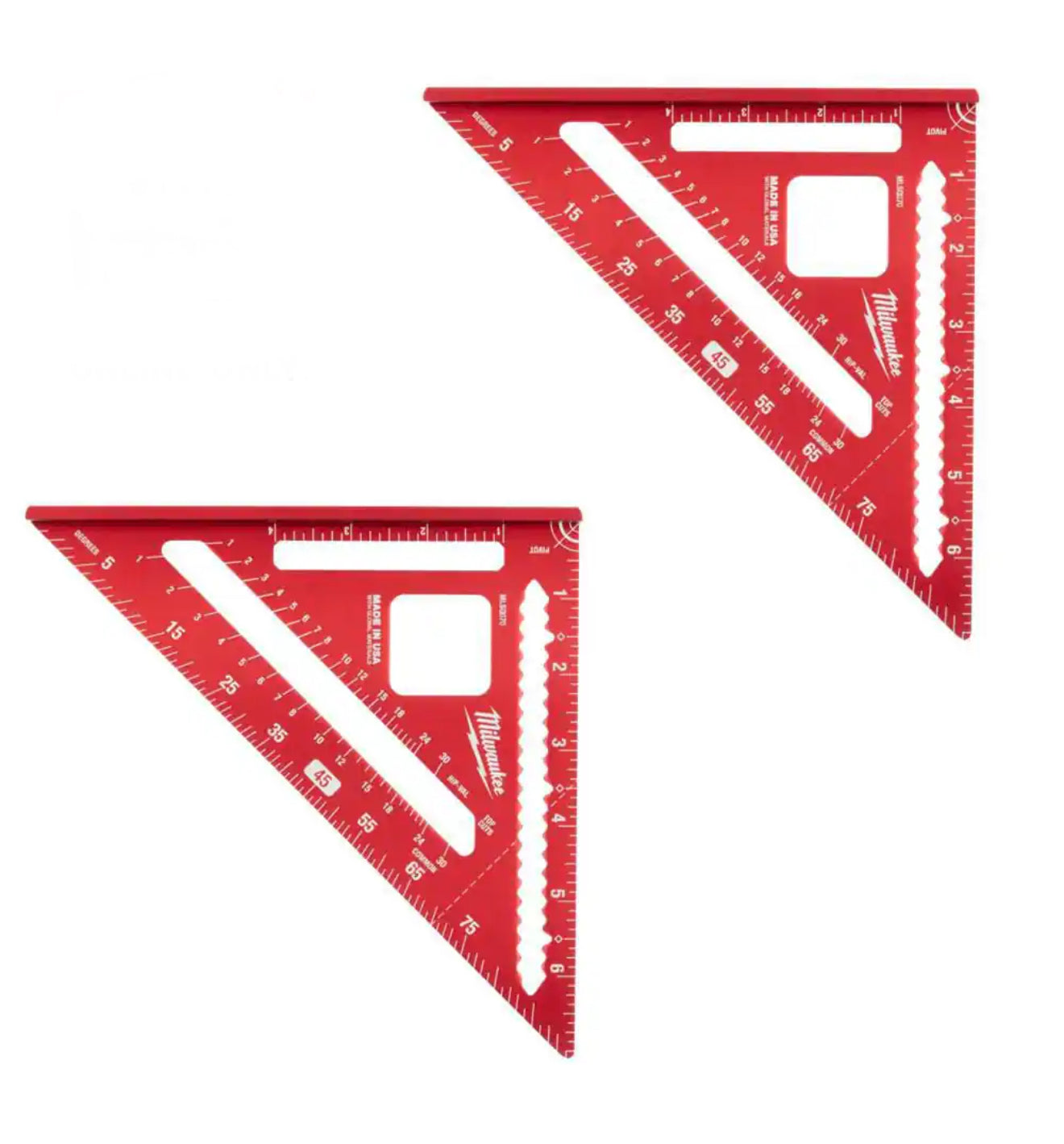 The 2-Pack MILWAUKEE 7 in. Rafter Square has a stronger frame and is the most versatile rafter square. The Milwaukee Rafter Square features scribe notches from 1 in. to 6 in. allowing for easy ripping of lumber. A 1 in. cutout helps prop pipe making it easier to cut on the job sites. A reinforced frame provides durability on the job site and high visibility laser etched markings make it easier to read your Milwaukee Rafter Square.